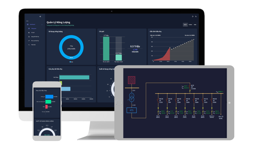 Thiết lập cảnh báo khi có sự cố hoặc vượt ngưỡng tiêu thụ, hỗ trợ xây dựng báo cáo năng lượng cho doanh nghiệp.