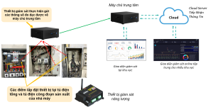 4 thiết bị giám sát tiêu thụ tổng điện cấp đến nhà máy từ lưới điện và hệ thống năng lượng mặt trời và 2 công đoạn nung cần quản lý.